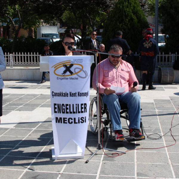 Cumhuriyet Meydanında düzenlenen törende konuşma yapan Türkiye Sakatlar Derneği Çanakkale Şube Başkanı Ümit Burunlular; “Engelliler yaşadıkları özel sorunların üzerine ülkemizdeki genel sorunlardan da daha ciddi etkilenmekte. 5378 kanun ile 2005 yılında 7 yıl içerisinde fiziksel erişim sorunlarının çözülmesi kanunu düzenlendi. 7 yıllık süre dolduğunda erişim sorunu çözülmediği görüldü. Eksikler olduğu görüldü. Sorumlular yerine engelliler cezalandırıldı. Erişim hala en temel problemler arasında sadece fiziksel erişim algılanması bilgiye erişim konusunda çalışma yapılmaması büyük sorundur. Sosyal yardım ve destekler; engellilerin eğitim ve özellikle istihdamda eşit şekilde yararlanamadığı görülmektedir. Bireyin iş bulmasını sağlayamayan devletlerin işsiz bireye insanca yaşanır bir yaşam sürdürecek ortamı sağlaması anayasal görevidir. Ancak 2022 kanun kapsamında alınan aylık çok düşüktür. Düzenlemeler eksiklikler giderilmek üzere devam etmektedir. Sosyal yardımda birey esasına geçilememiştir. Dayanışma; engellilerin sorunları çözümünde dayanışma temel çözüm yöntemi olarak kullanılmaktadır. Halkımızın dayanışma duygusuyla yaptıkları yardımları çok önemli buluyoruz. Halkımıza teşekkür ediyoruz. Engelli vatandaş ve devlet arasında yardımlaşma perspektifi ile hareket edilmektedir. Bu durum kabul edilemez. Devlet ile vatandaş arasındaki ilişki hak ödev olarak tanımlanıyor. Devletimizin anayasal ödev olarak çözüm üretmesi gerekmektedir. Ayrımcılık ve eşitlik konusunda engellilerin insanca yaşam talebinden başka talebi yoktur. Tüm destekler eşitliği sağlamaya yöneliktir. İşsizlik oranı % 70 üzerindedir. Bu eşitsizliği açık şekilde ortaya koymaktadır. Engelli sorunu insan hakları sorunudur. Başta başbakanımız olmak üzere bakanlar ve tüm yöneticilerden sorunlarımıza duyarlı olmalarını çözüm üretmelerini her zaman bizim yanımızda olduklarını biliyoruz ama pozitif ayrımcılık istediğimizi belirtir tüm katılımcılara engellilere potansiyel engeliler etkinliğe geldikleri için teşekkür ederiz” dedi.