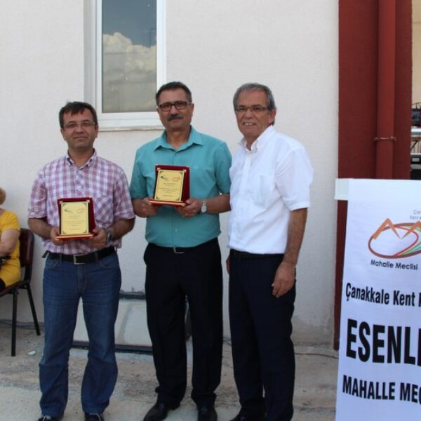 Çanakkale Kent Konseyi Esenler Mahalle Meclisi Uygulamalı Doğa Eğitim Çalışma Grubunun erozyonu önleme adına başlattığı meşe palamudu dikim projesine destek veren okulların müdürlerine plaket, projeden sorumlu öğretmenlere teşekkür ve öğrencilere katılım belgeleri düzenlenen törenle takdim edildi.