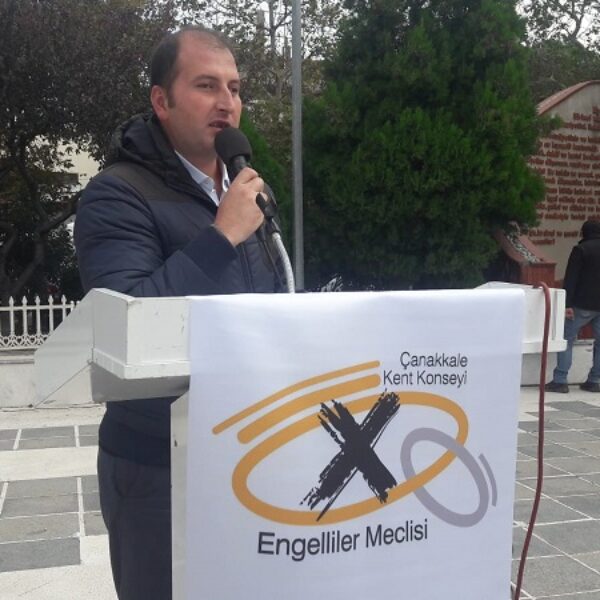 Çelenk sunma töreni sonrasında konuşma yapan Altı Nokta Körler Derneği Çanakkale Şube Başkanı Uğur Karabıyık, “Damdan düşenin halini damdan düşen anlar” Sizden bir şey isteyeceğim. Görme engelli olan meydanda kaç kişi vardır. Siz hakkınıza sahip çıkmazsanız, siz gününüze sahip çıkmazsanız karşındakinin seni anlamasını bekleyemezsin. Buna hakkında olmaz. Sen damdan düşensin, damdan düşenin halini ancak damdan düşen anlar. “Bu gün neden resmi tatil değil?” 3 Aralık Dünya Engelliler Günü Türkiye genelinde resmi tatil. 10-16 Mayıs Türkiye Sakatlar Haftası’nda her engelli gününe bir resmi tatil verilmiş. Bu Beyaz Baston Günü neden bizlere resmi tatil değil? Görme engelli arkadaşlarımızın burada olamamasının nedeni bu günün tatil olamamasıdır” dedi.