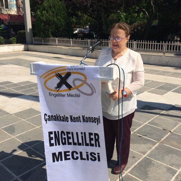 Çanakkale Kent Konseyi Engelliler Meclisi Yürütme Kurulu üyesi başkan yardımcısı Gülcan Civelek yaptığı konuşmada; “Engelliler de yaşamlarını sürdürmek için çalışmak ve gelir sağlamak durumundadırlar. Biz engelliler bize acınmasını istemiyoruz. Bizler bulaşıcı hastalığı olan bireyler değiliz. Bize dokunursanız engelli olmazsınız. Bize bir tebessümünüz yeter. Engelliye, yaşlıya nasıl davranılması gerektiğinin küçük yaşlarda öğretilmeli ilkokullarda eğitim müfredatına girmelidir. Biz kendimiz engelleri aşarız, yeter ki siz engel olmayın” dedi.