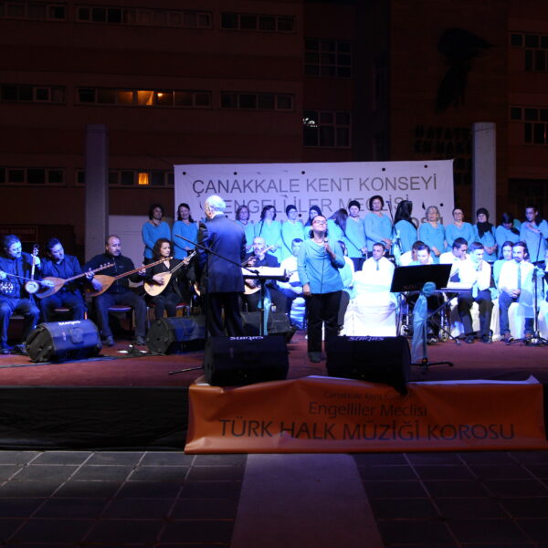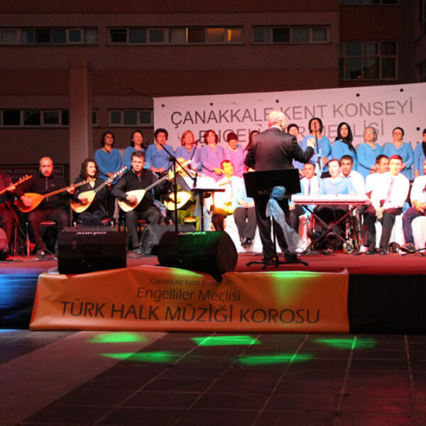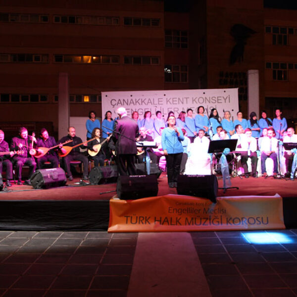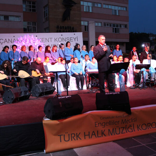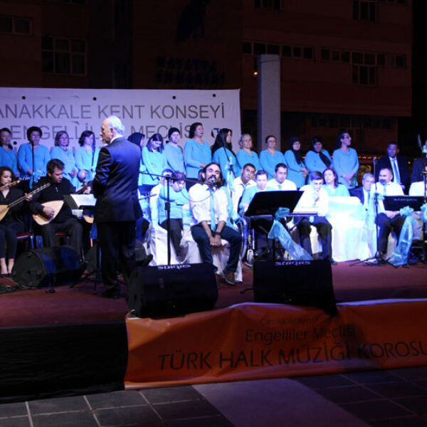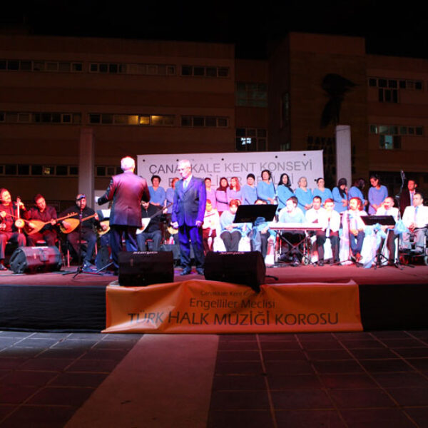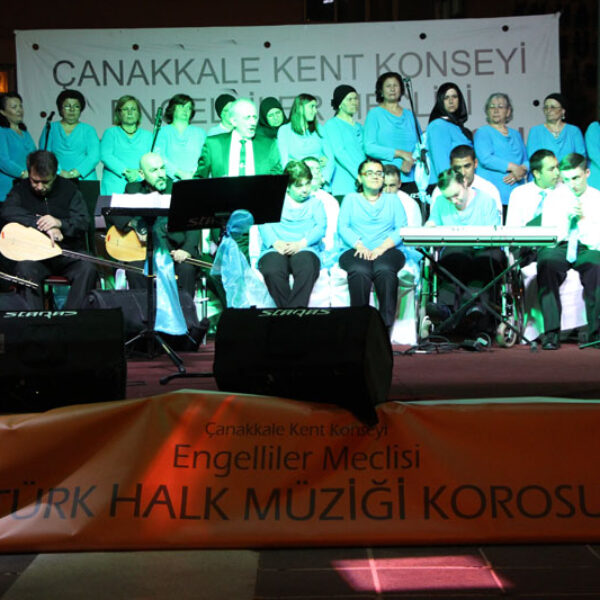 Çanakkale Kent Konseyi Engelliler Meclisi tarafından oluşturulan aralarında spastik, görme, bedensel ve zihinsel engellilerin bulunduğu Türk Halk Müziği Korosunun Cumhuriyet Meydanında gerçekleştirdiği konser büyük ilgi gördü.