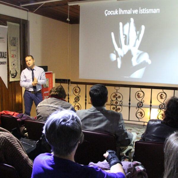 Çanakkale Kent Müzesi toplantı salonunda gerçekleştirilen söyleşide Aile ve Sosyal Politikalar İl Müdürlüğü Sosyal Hizmet Uzmanı Mehmet Kazancı yaptığı konuşmada; "Çocuk istismarı, Çocuğun sağlığını, fizik ve psikolojik gelişimini olumsuz etkileyen, bir yetişkin, toplum ya da devlet tarafından bilerek ya da bilmeyerek yapılan harekete ya da davranışlara denir. Çocuğun sağlığı, fiziksel ya da psikolojik gelişimi için gerekli ihtiyaçların karşılanmaması ise Çocuk İhmali olarak tanımlanmaktadır” dedi.