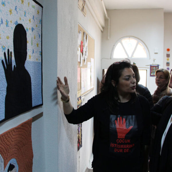 3E Tasarım Atölyesi hocası ve sanatçı Ece Malkoç; “ Kadına yapılabilecek en büyük şiddet kendi çocuğunun istismarıdır. Çocuk istismarı asla kadına şiddetten ayrı tutulamaz diye düşünüyorum. Arkadaşlarım, kursiyerlerim ve ben hiçbir parçayı severek beğenerek ve mutlu olarak çalışmadık. Hayatımızda kırkyama bize her zaman mutluluk vermiştir ama bu çalışma kapsamında bazı panolarda acıları göreceksiniz bazılarında olmasını, gerçekleşmesini istediğimiz hayatı göreceksiniz. Dilerim artık çocuk istismarı işlenmesin. Dilerim ülkemizde çocuk istismarı kadına şiddet olmasın” dedi.