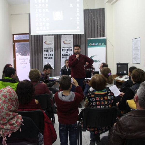 Kültür ve Sanat Meclisi Yürütme Kurulu üyesi Zerrin Saraçoğlu açılış konuşmasında kısaca Sabahattin Ali’nin bazı özelliklerinden söz etti. Halil Özçelik yaptığı sunumda hayatı ile ilgili yaşanmışlıklarını katılımcılarla paylaştı. Zerrin Saraçoğlu “Kudurmak” isimli şiiri seslendirerek seyircinin ilgisini topladı. Volkan Konak’ın “Göklerde Kartal Gibiydim” şarkısı salondakilerle birlikte söylendi.