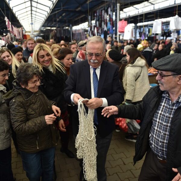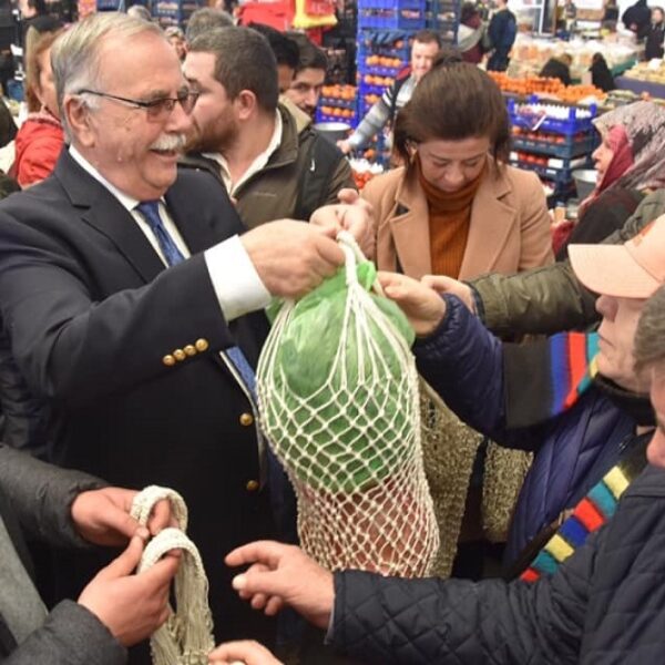 Fevzipaşa Mahallesi kadınlarının ürettiği yaklaşık 1000 adet filenin Cuma Pazarında gerçekleşen dağıtımına Belediye Başkanı Ülgür Gökhan da katıldı. Kentlilerle bir araya gelen Başkan Gökhan, naylon poşetler yerine doğa dostu filelerin kullanımının artması temennisinde bulundu.