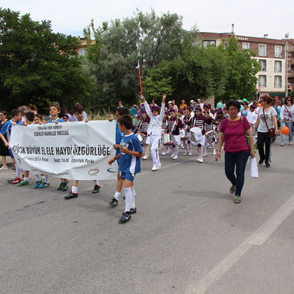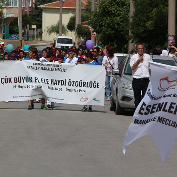 Şenlik, Esenler Mahalle Meclisi önünden Özlem Kayalı İlkokulu Bando ekibi, folklor ekibi, Çanakkale Esenler Gençlik ve Spor Kulübü, mahalle sakinlerinin katılımıyla kortej yürüyüşü ile başladı. Yürüyüş, Barış Caddesi, Adnan Kahveci Caddesi, İzzet Çetin Sokak’ı takiben Özgürlük Parkında sona erdi.