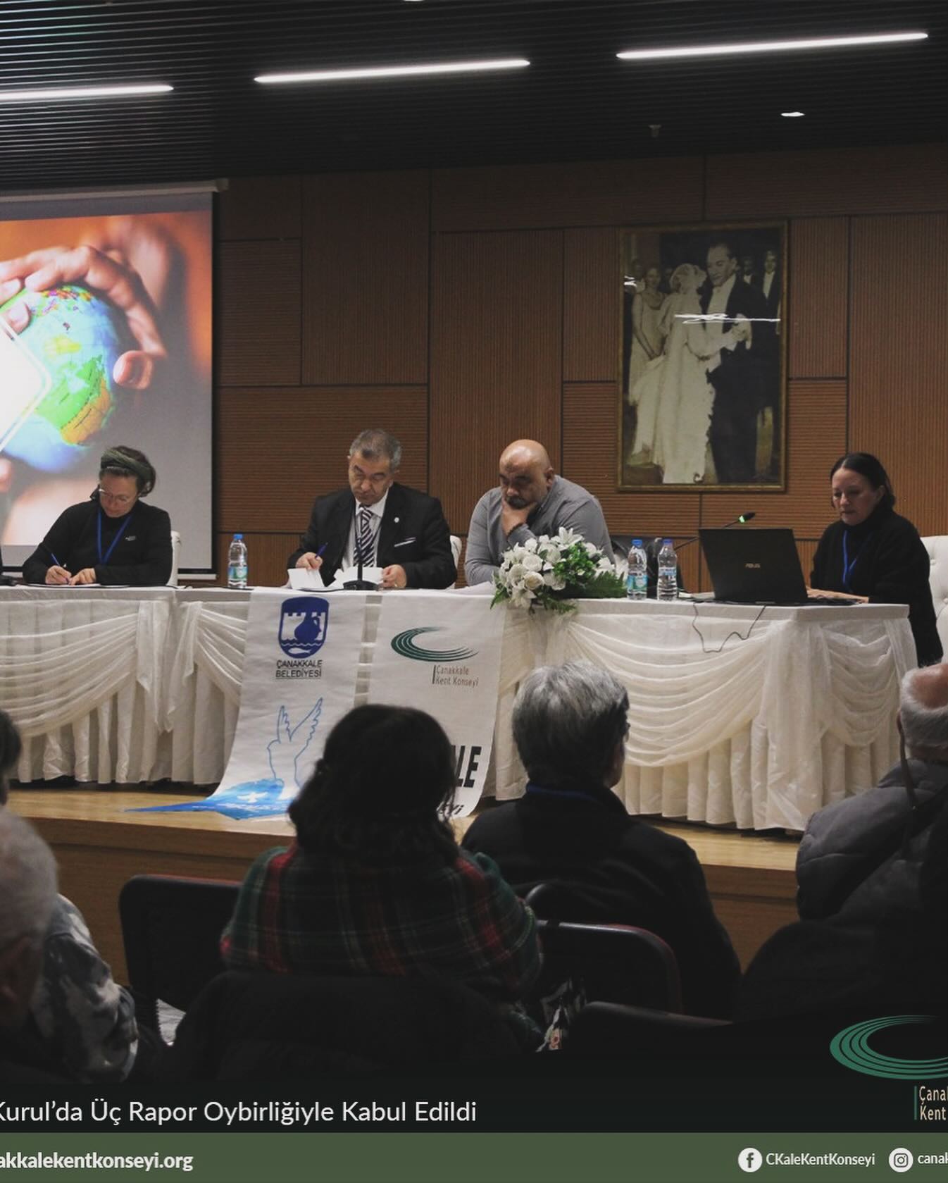 Çanakkale Kent Konseyi Genel Kurulu 30 Ocak Salı günü toplanarak, gündemde yer alan Otizm Çalışma Grubu Raporu, Seçmen Çalışma Grubu Bildirgesi ve Yaşlanan Çanakkale Çalışma Grubu raporunu görüştü ve raporlar oybirliğiyle kabul edildi.
