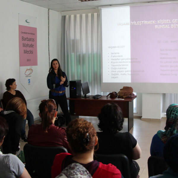 Çanakkale Kent Konseyi Barbaros Mahalle Meclisi “Haydi Kadınlar Katılın Bize” çalışma gurubu çalışmaları kapsamında Nefes Terapisti ve Yaşam Koçu Sezin Yetişen Koç tarafından doğru nefes ve iyi yaşam üzerine uygulamalı sunum gerçekleştirildi. Çalışmada, diyafram kullanımı, enerji düzeyini yükseltme ve stresi azaltma konuları işlendi.