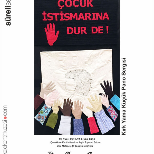 Kent Müzesinde “Kentte Kadına Şiddet” başlıklı süreli sergi devam ederken, İzmirli sanatçı Ece Malkoç ve ekibinin hazırladığı“Çocuk İstismarına Dur De” Kırkyama sergisi de 5 Ekim’den itibaren Kent Müzesi’nde sergilenmeye başlayacak.