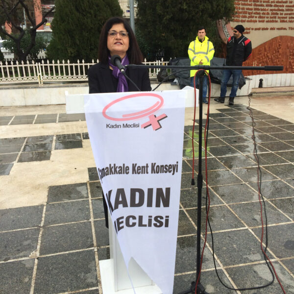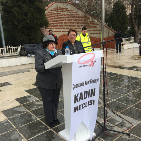 Eğitim ve Bilim Emekçileri Sendikası Çanakkale şube başkanı Filiz Savaş; “8 Mart yalnızca kadınlar günü olarak bayram gibi kutlanacak bir gün değildir. 8 Mart tüm öfkemizi dile getireceğimiz taleplerimiz haykırabileceğimiz bir gündür. Tüm dünya ile birlikte kadınlara ikinci vatandaş olarak bakılmasına ötekileştirilmesine değersizleştirilmesine sosyal ve çalışma yaşamından uzaklaştırılmaya çalışılmasına dur deme günüdür. Kadınım “ben de varım” deme günüdür dedi.