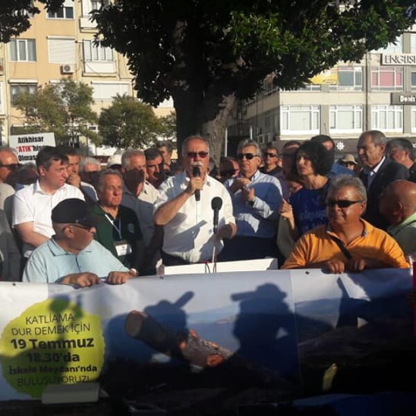 Metalik madencilik işletme faaliyetleri sonucu Çanakkale'nin Kirazlı Atikhisar Barajı bölgesinde gerçekleşen katliama dur demek için Ege ve Marmara Çevre Belediyeler Birliği, Çanakkale Belediyesi, Kent Konseyleri, kadın dayanışma dernekleri, izci, bisiklet, kamp grupları ve yaşamı savunan bütün STK'lar İskele Meydanı'nda buluştu.