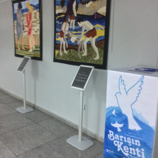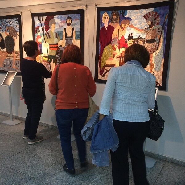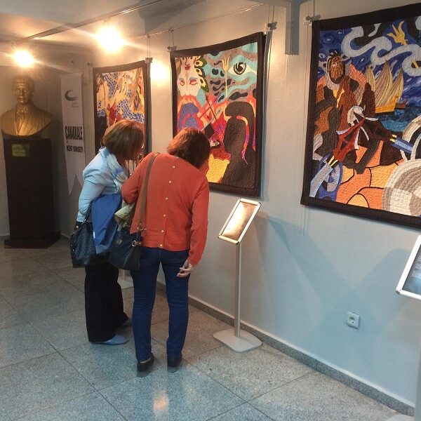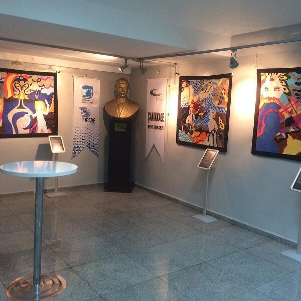 Çanakkale Kent Konseyi Boreas Kırkyama Çalışma Grubu'nun eserlerinden oluşan "Kırkyama Dilinden Troia Destanı" adlı sergi açıldı.