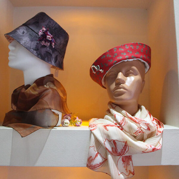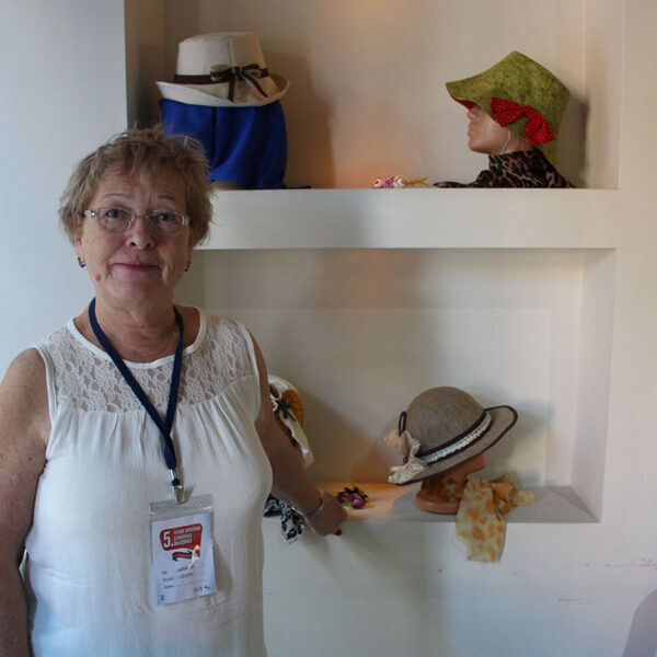 Nebiye İşcen; “2 yıl önce burada giysilerle kortej yürüyüşü olacaktı. Burhaniye’de kurs veriyordum Birsen hocanın tavsiyesiyle şapka tasarlamaya başladım.  Bir şapka yaptık hayatım değişti. Geçen yıl Ayşin Aksu Demirci ile Birsen hoca ile birlikte beni teşvik ettiler. El sanatları süsleme bölümü mezunuyum ondan yola çıkarak çok araştırarak şapkaları hayata geçirmeye başladım. Zor bir yıl geçti. Ama mutluyum. Güzel şeyler olduğuna inanıyorum. Patchwork sadece örtülerle kalmadığı giysilere yansıdığını gösterdim. Şapkalar ve süsler tamamen benim elde ürettiklerim. Dışarıdan alınıp şapkanın süslenmesi değil. Şapkaları kendim yaptım. Kasket ve spor şapkalarda farklı teknikler var süslemeler farklı. Artan kumaşları ve kot etekten artan kumaşı değerlendirerek torunuma yaptığım şapkalar var. Kullanılmayan bir danteli şapka süslemede kullandım. Şapka çalışmasında kumaşa uygunluğuna dikkat ettim. İşe kendinizi verdiniz mi başarılı sonuçlar çıkıyor.
