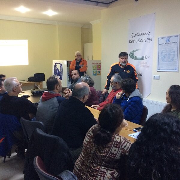 Çanakkale Kent Konseyi Cevatpaşa Mahalle Meclisi Çalışma ofisinde gerçekleştirilen eğitime Türkiye Radyo Amatörleri Cemiyeti Çanakkale Şubesi üyeleriyle birlikte toplam 36 afet gönüllüsü katıldı.