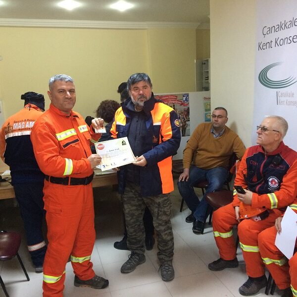 Çanakkale Kent Konseyi Cevatpaşa Mahalle Meclisi Mahalle Afet Gönüllüsü Çalışma Grubu, Mahalle Afet Gönüllüleri Acil Müdahale Derneği işbirliği, Çanakkale Belediyesi’nin katkılarıyla düzenlenen Çanakkale Afet Gönüllüleri eğitimi tamamlandı.