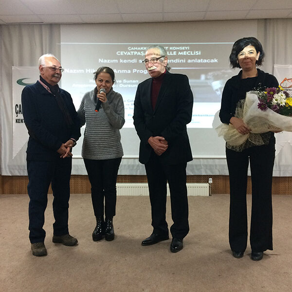 Çanakkale Kent Konseyi Cevatpaşa Mahalle Meclisi tarafından, Nazım Hikmet Ran'ı anma söyleşisi gerçekleştirildi. Çanakkale Belediye Çalışanları Eğitim, Sosyal Tesis ve Sendika Binasında bulunan Ercan Adsız Toplantı Salonunda yapılan söyleşide Şair Nazım Hikmet, 117'nci yaşında Araştırmacı Gazeteci Yazar Şair Dursun Özden’in anlatımıyla anıldı.