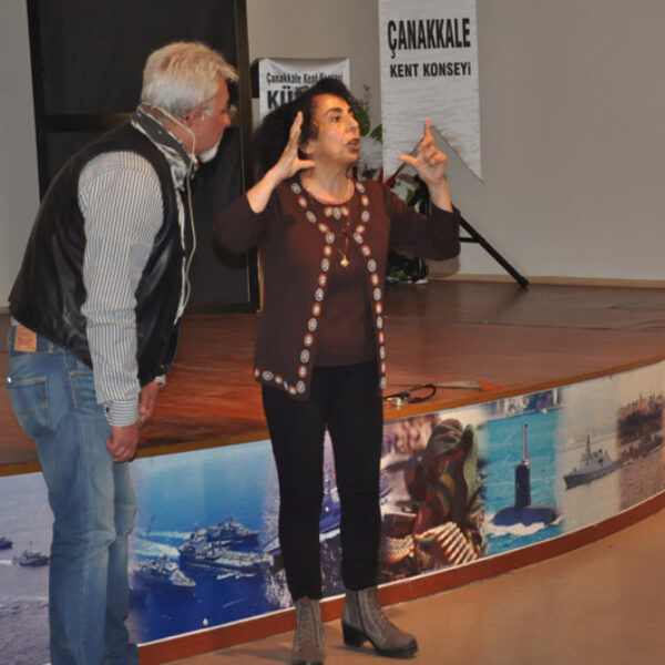 Çanakkale Kent Konseyi Kültür ve Sanat Meclisi Dünya Tiyatrolar Gününde Fatih Birgücü'nün katkılarıyla hazırlanan doğaçlama oyunu Çimenlik Kalesi Yüzbaşı Ahmet Saffet Konferans Salonunda sahneledi.