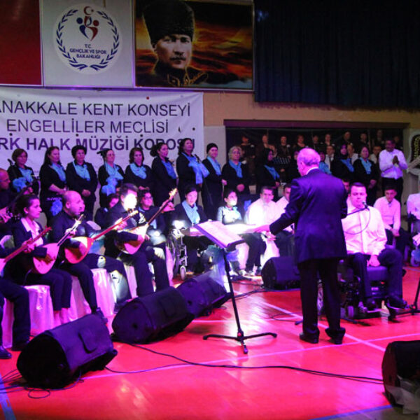 Çanakkale Kent Konseyi Engelliler Meclisi tarafından oluşturulan aralarında spastik, görme, bedensel ve zihinsel engellilerin bulunduğu Türk Halk Müziği Korosunun 18 Mart Spor Salonunda gerçekleştirdiği konser büyük ilgi gördü.