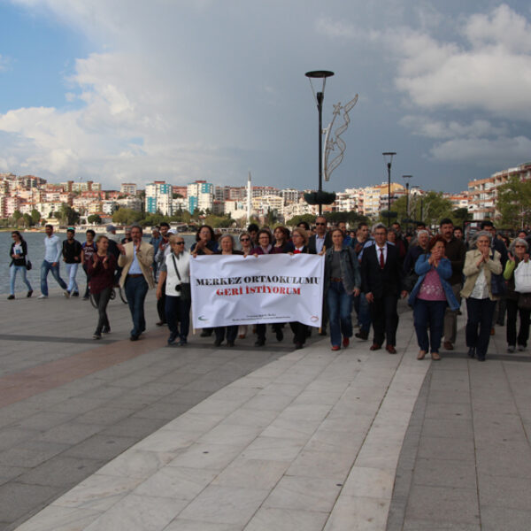 Çanakkale Kent Konseyi Cevatpaşa Mahalle Meclisi “Merkez Ortaokulumu Geri İstiyorum” Çalışma Grubu, Merkez Ortaokulu Gönüllüleri Derneği, mahalle sakinleri ve gönüllüler Merkez Ortaokulu önünden başladıkları yürüyüşlerini valilik binasının önünde yaptıkları basın açıklaması ile tamamladılar